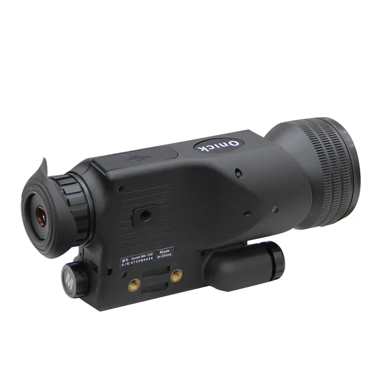 Onick NK-730 metal version digital night vision device product, this product can be used both during the day and at night. This product has a magnification of 6-36 times, the objective lens diameter is 50mm/f1.0, and the field of view angle is 10°. 0.4" high-definition 1280*720P display; 1080P FHD high-definition video, 4032 x 3024 high-definition photography; the product's built-in WIFI can be connected to a mobile phone, and users can watch and operate on the mobile phone simultaneously; the maximum support FAT32 format memory card is 128GB. Whether it is exploration, hunting, or security protection in a dark environment, this digital night vision device is a must-have for you.